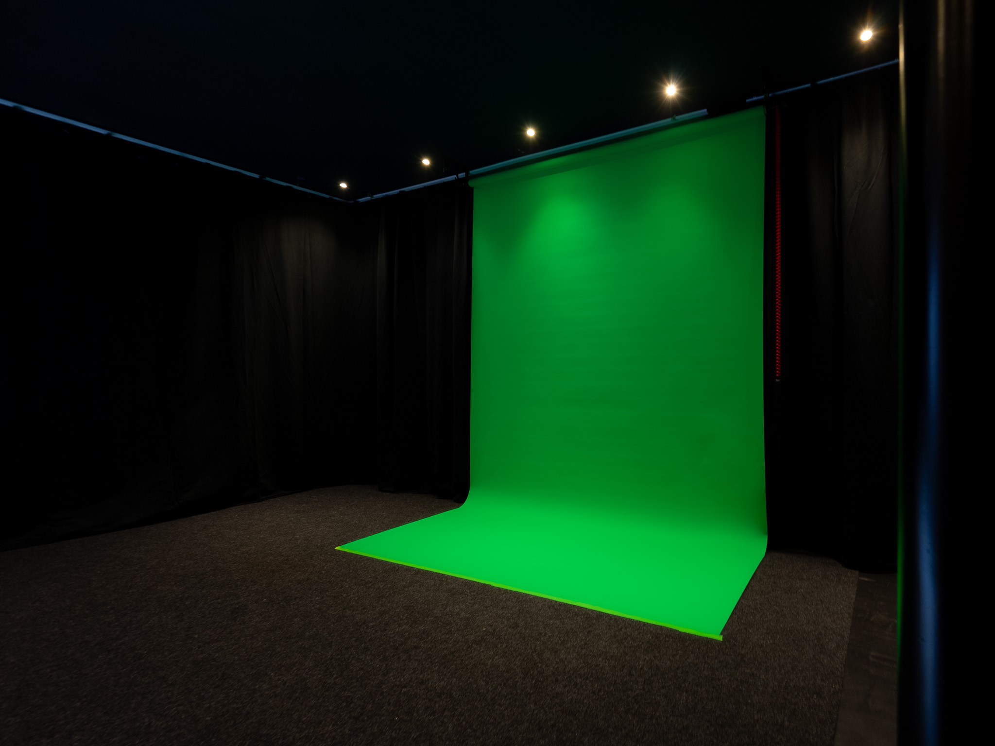 • Blackbox: Zwarte gordijnen rondom voor verduistering en afkadering